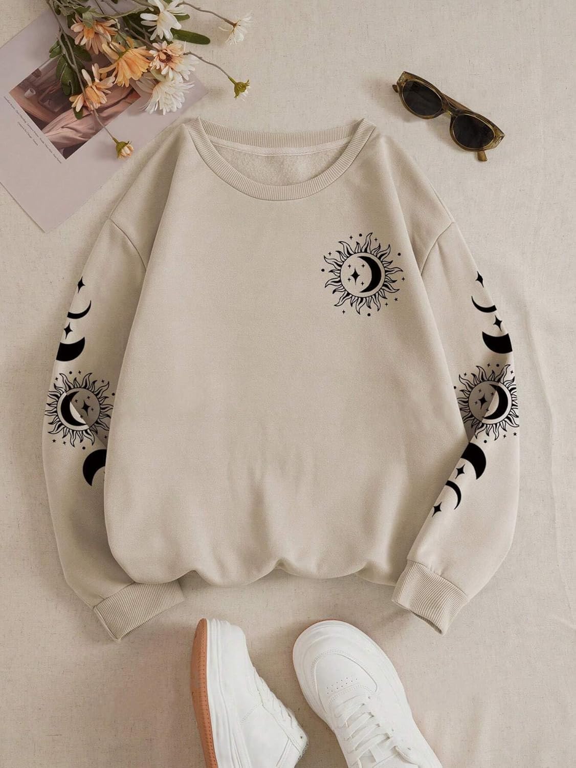 Women’s Sweatshirt|Womens Winter Wear |Sweatshirt |Women’S Sun & Moon Print Sweatshirt
