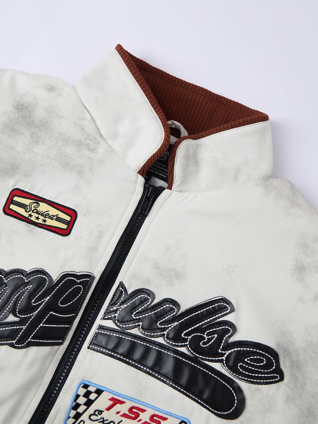 Step into the world of bold streetwear with The Souled Store’s Racer Jacket: Impulse, designed for those who love to make a statement. As a leading pop-culture fashion brand, The Souled Store combines style and functionality effortlessly. Crafted from 100% polyester, this jacket features a regular fit with a zippered closure and rib-knit cuffs for added comfort and warmth during winter. The standout graphic print, applique patches, and embroidered text on the full-front make it a unique addition to your wardrobe. With practical slit pockets and a smooth finish, this jacket is perfect for casual outings or streetwear enthusiasts looking to elevate their style game.