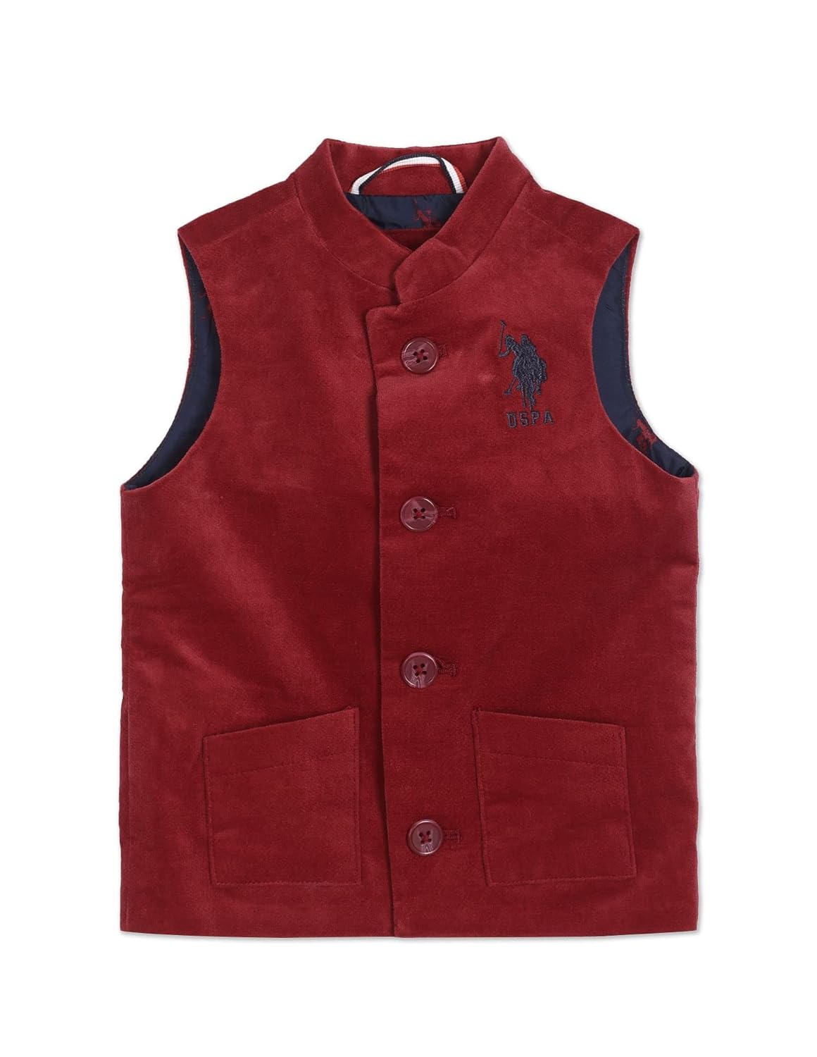 Generic Name ‏ : ‎ Boys Maroon Mandarin Collar Solid Jacket