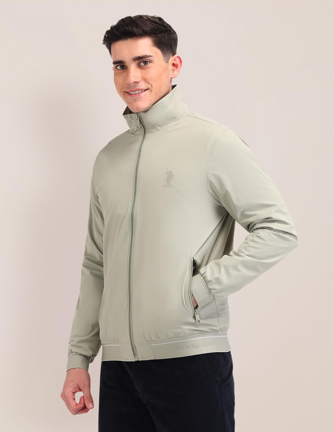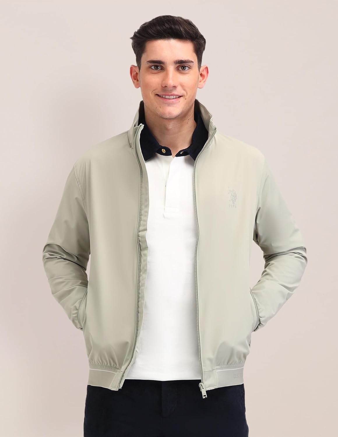 U.S. POLO ASSN. Men’s Green Color-Block High neck Long Sleeve Casual Polyester Regular Fit Jacket