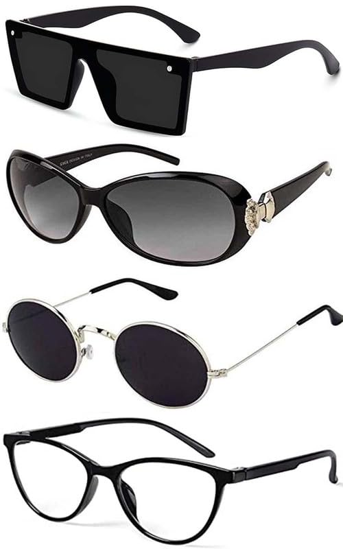 Unisex Black Square Sunglasses for Men and Women | UV400 Protection Shades & Stylish Frame Butterfly Round Cateye Combo Offer Pack with Box – #2148