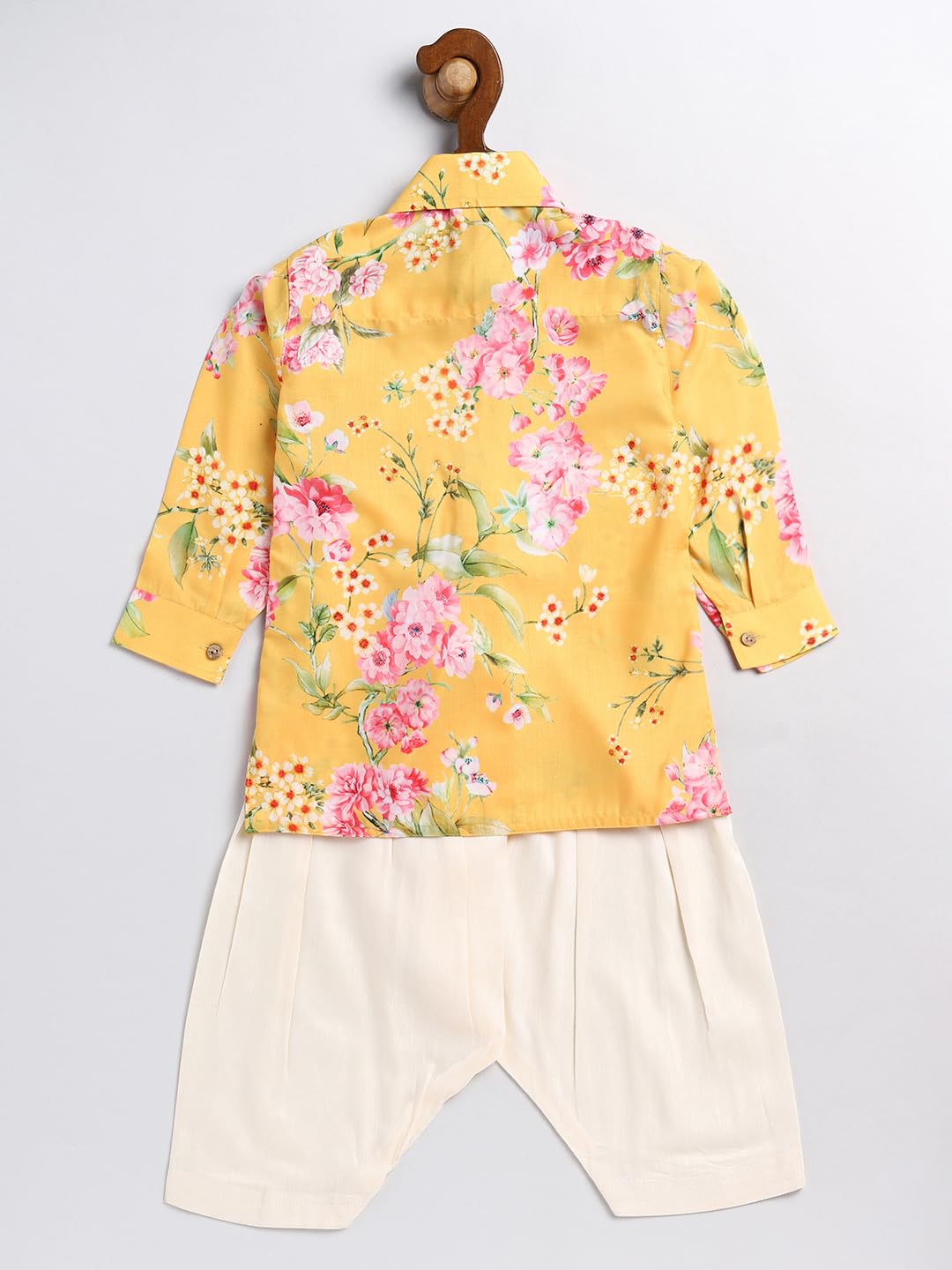 floral printed cotton pathani kurta is a wardrobe staple. Easy and comfortable, this set can be used for everyday wear or festive occasions. Patiala is made viscose blend with elasticated waistband and drawstring.