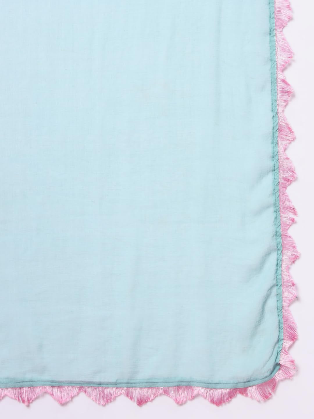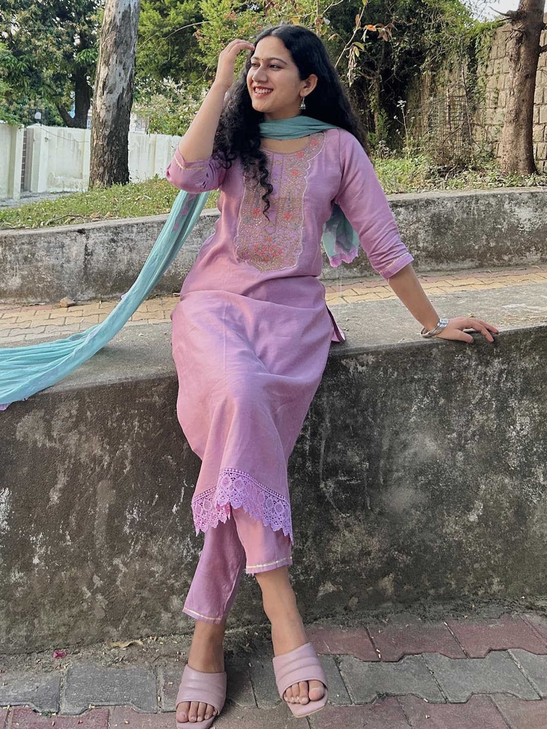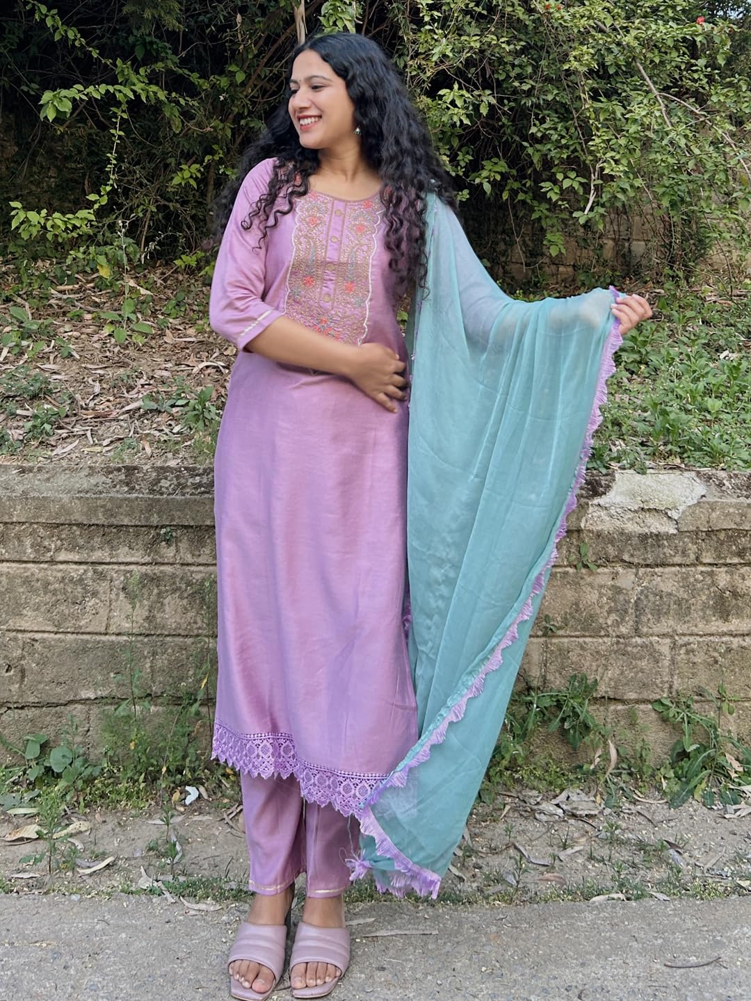 VredeVogel Women’s Cotton Silk Blend Embroidered Kurta with Pant & Nazneen Dupatta Set