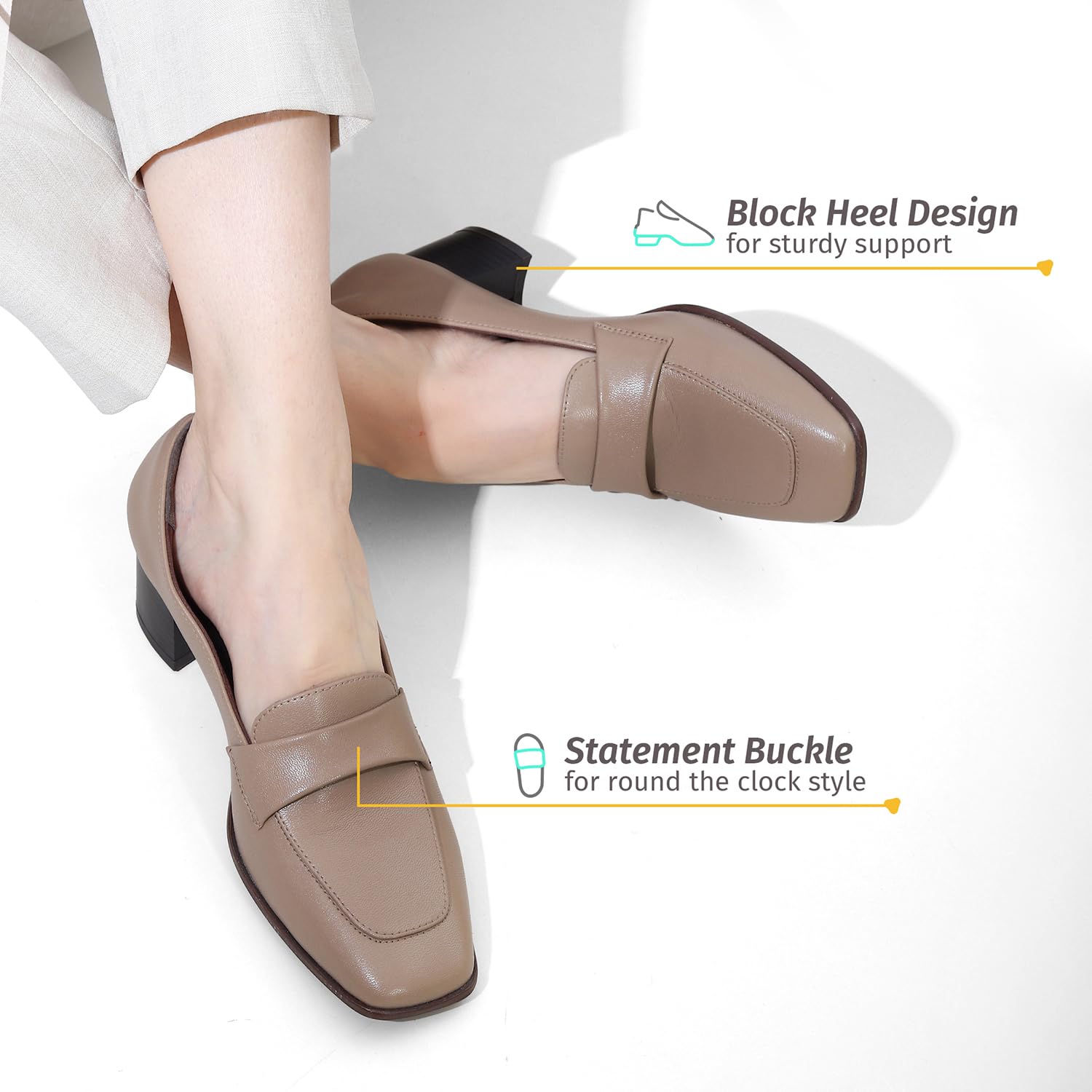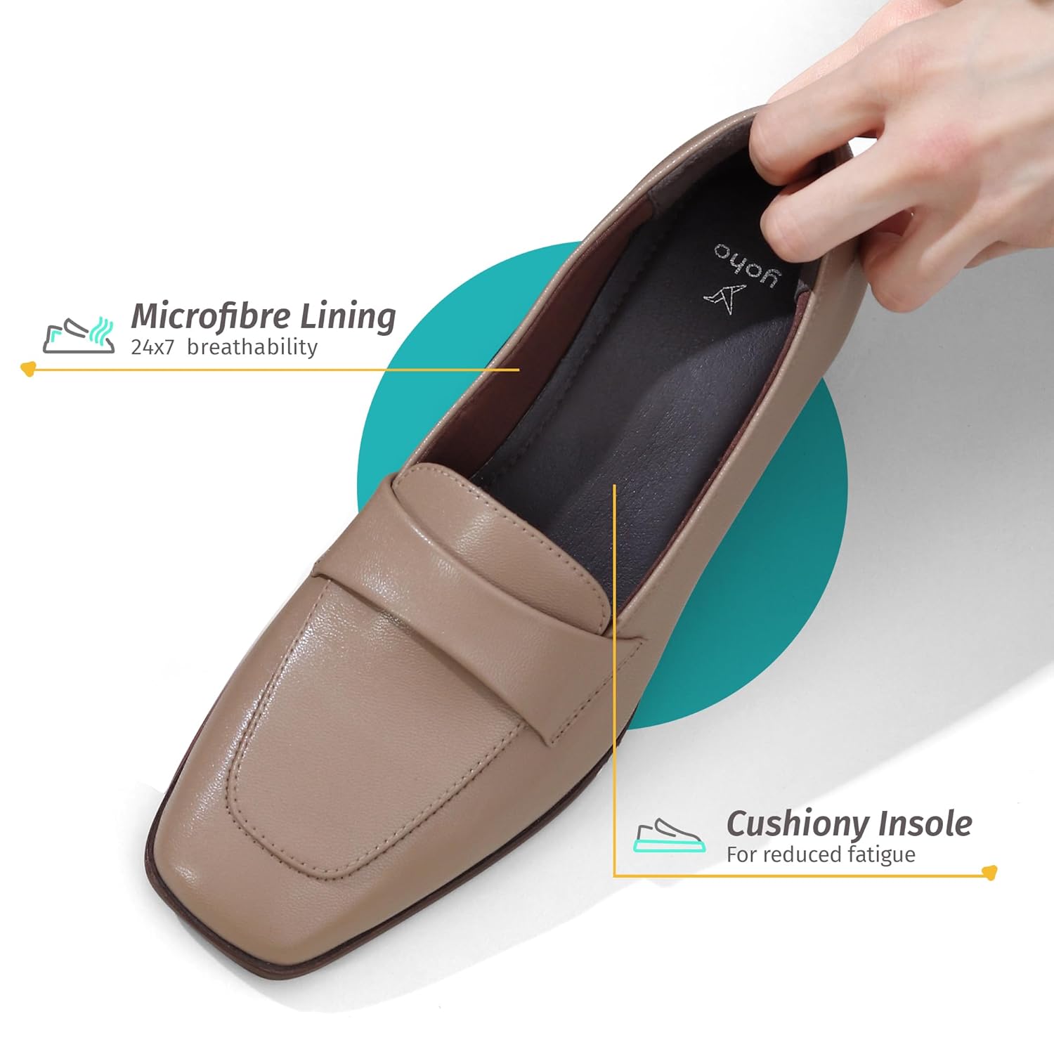 YOHO Bliss Heel 001 Slip-on Loafers for Women | Comfortable & Stylish Block Heeled | Fashion Moccasins with Footpharma Footbed | Perfect for Casual, Formal Shoe
