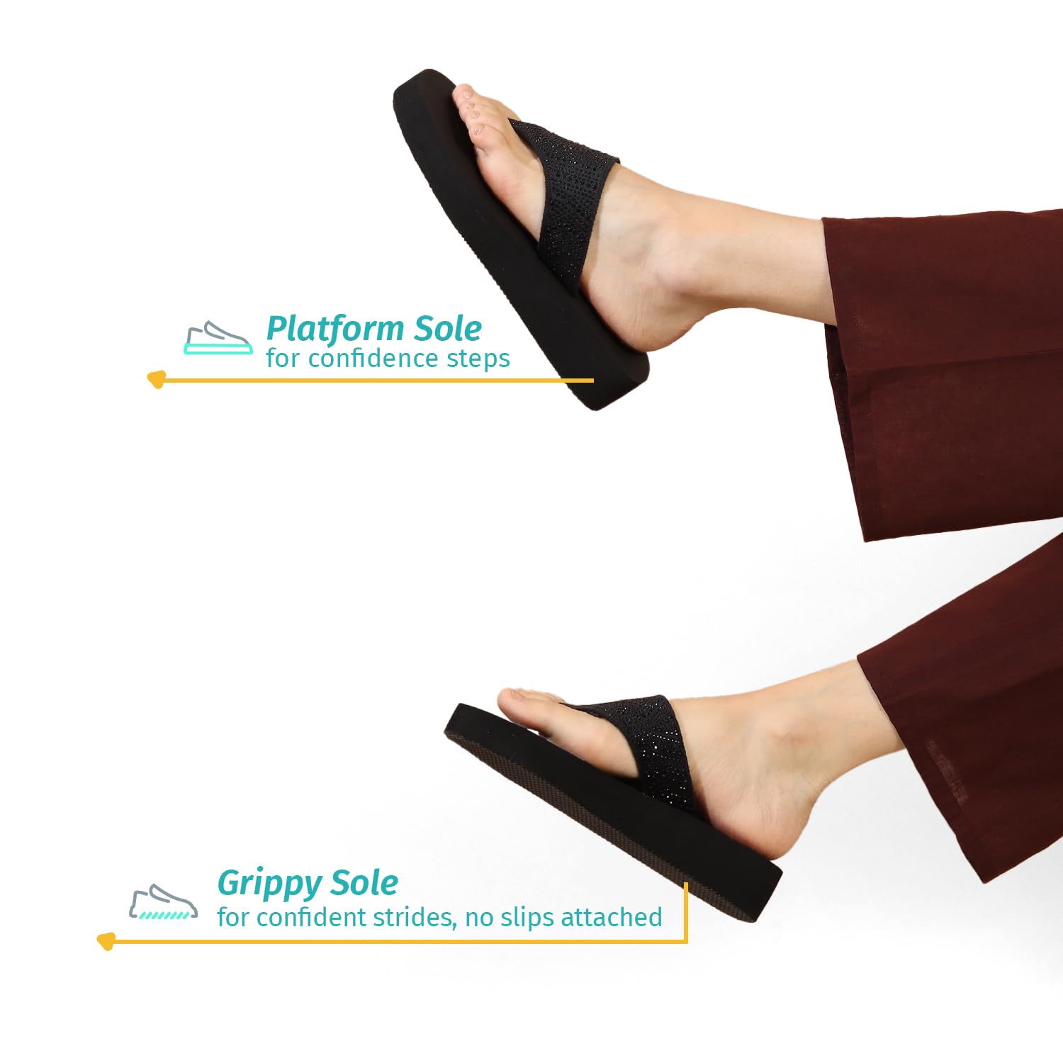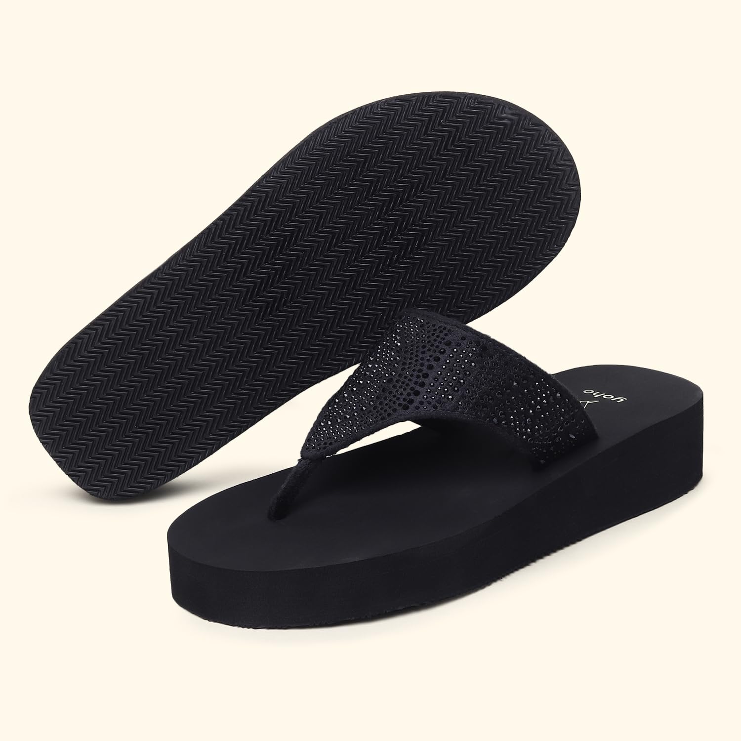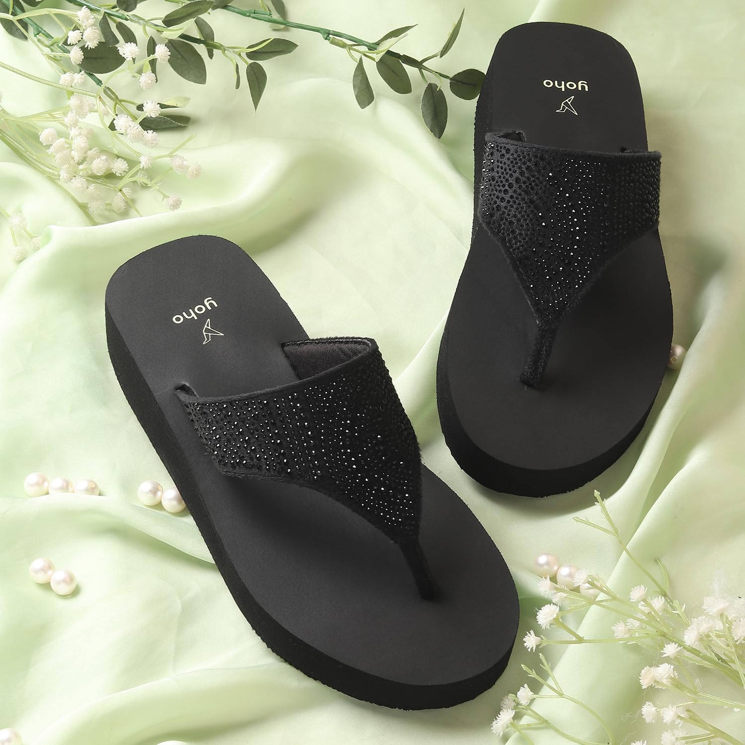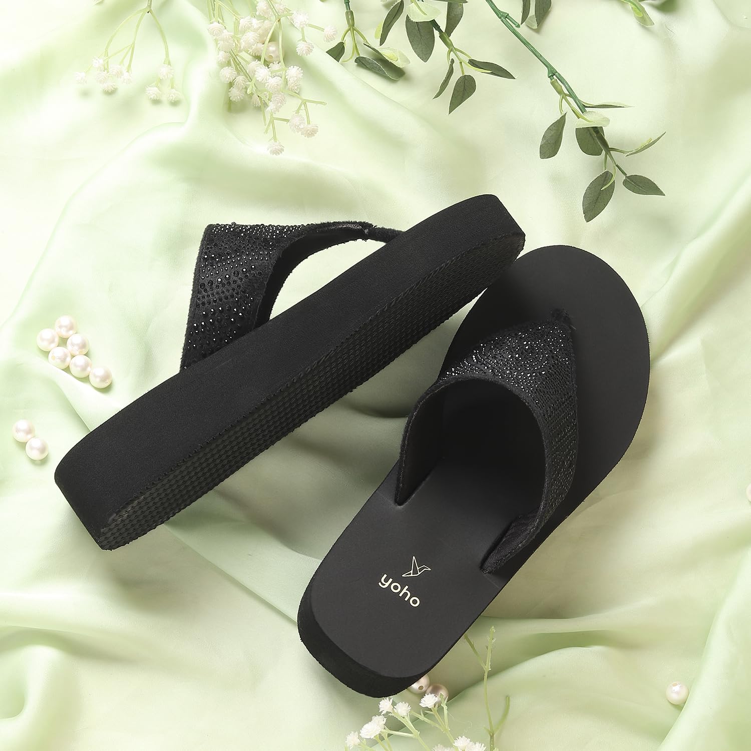YOHO SDL 107 Slippers for Women | Velvet V-Strap Slip-On Chappals | Stylish Flat Footwear & Sandals for Ladies | Comfortable Platform for Daily Use