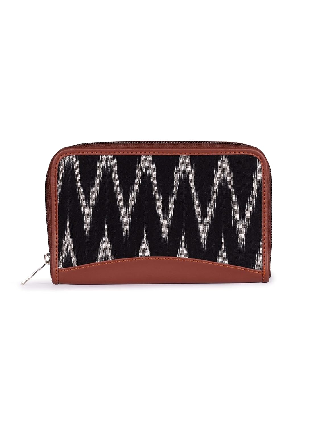 ZOUK Ikat Wallets for Women – Handmade Wallets for Females – Vegan Leather and Ikat Purse for Ladies – Clutch with Indian Print – Wallets for Mobile Phones – Ikat Wave Print, Black