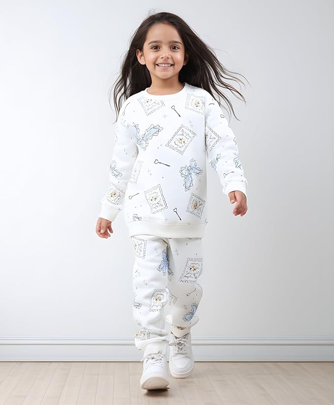 ANTHRILO Warm Fleece Sweatshirt Jogger Set for Girls